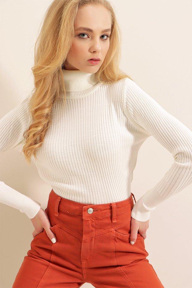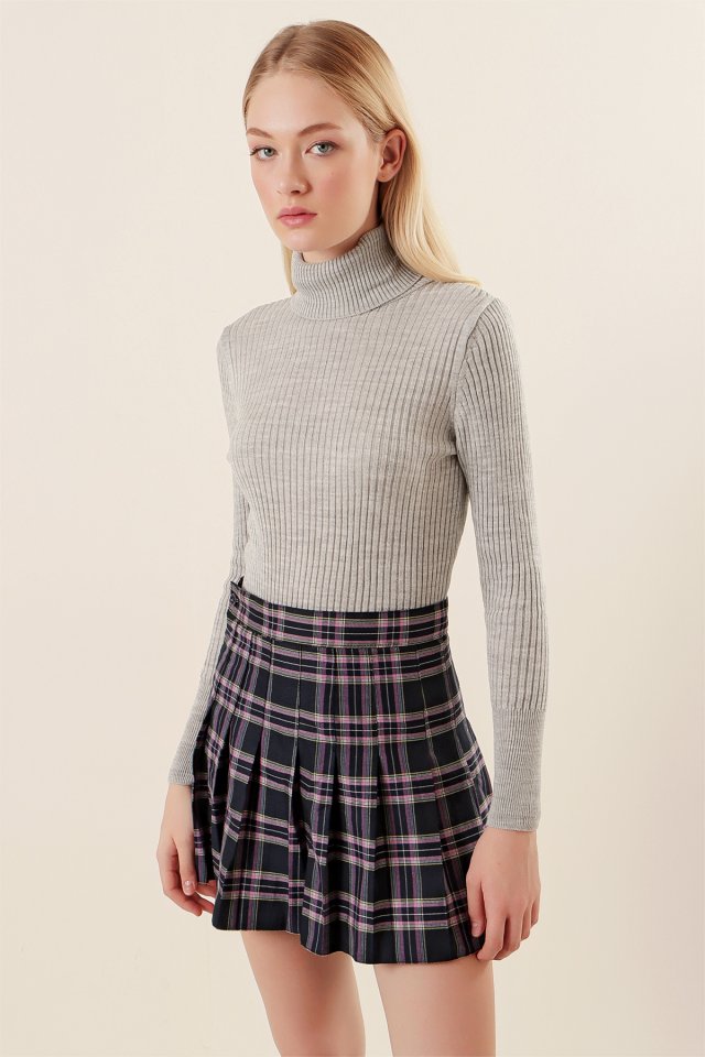 10311 Balıkçı Yaka Triko Kazak - Saks