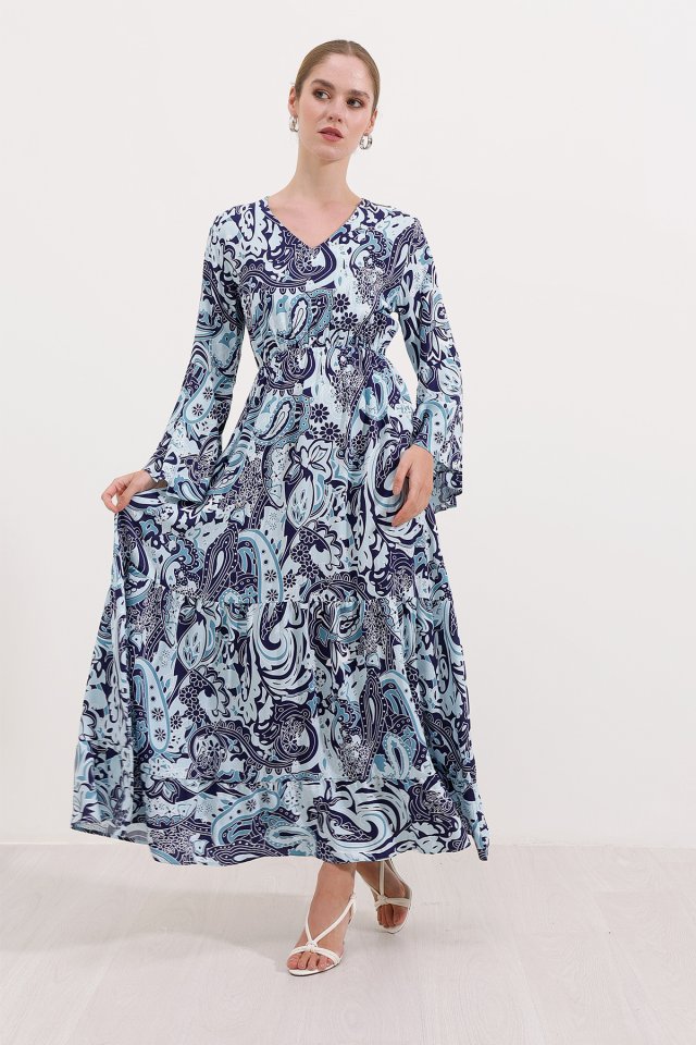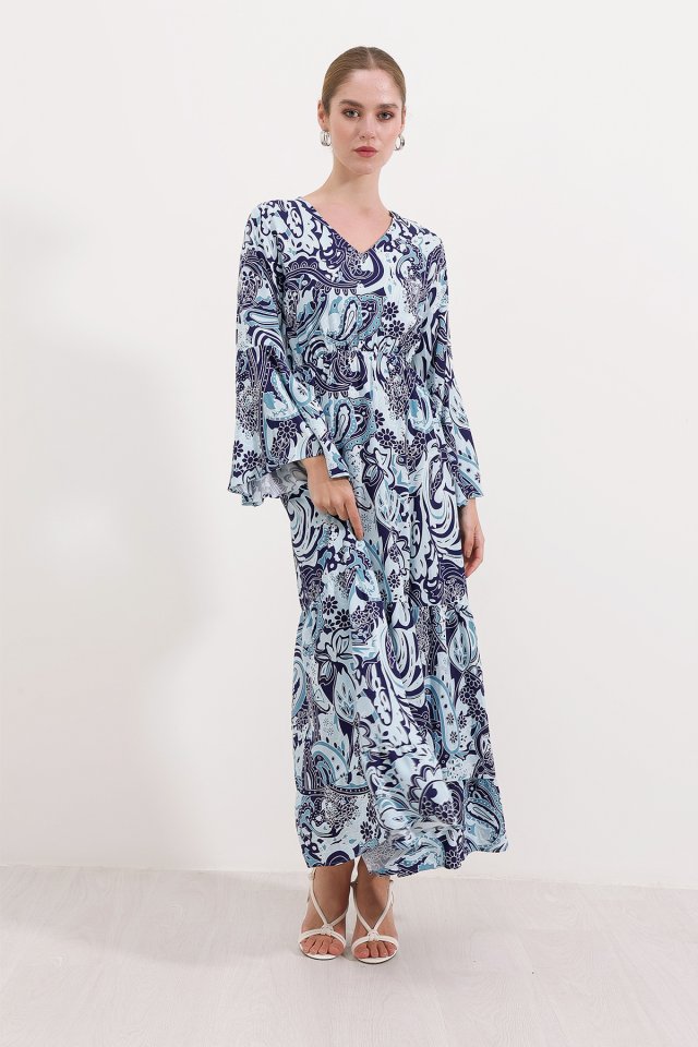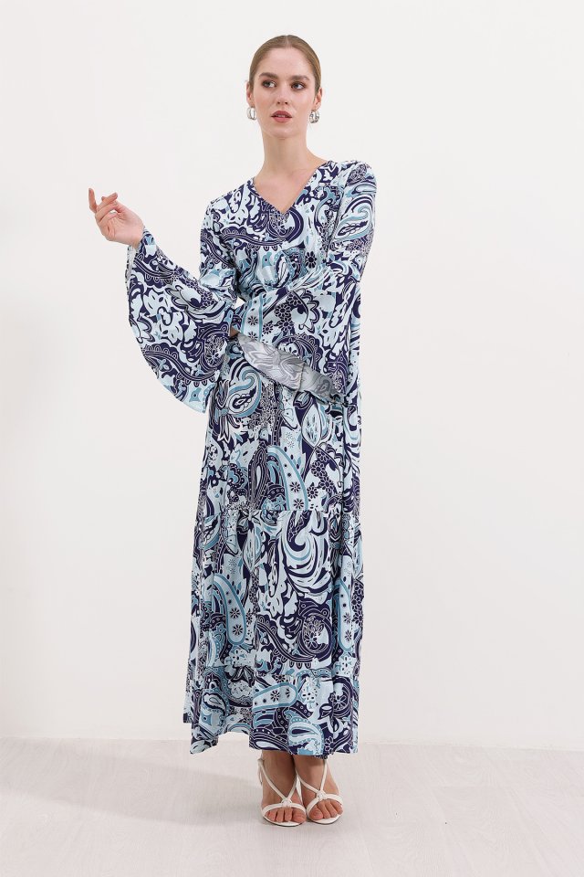 2454 Desenli Uzun Elbise - Lacivert