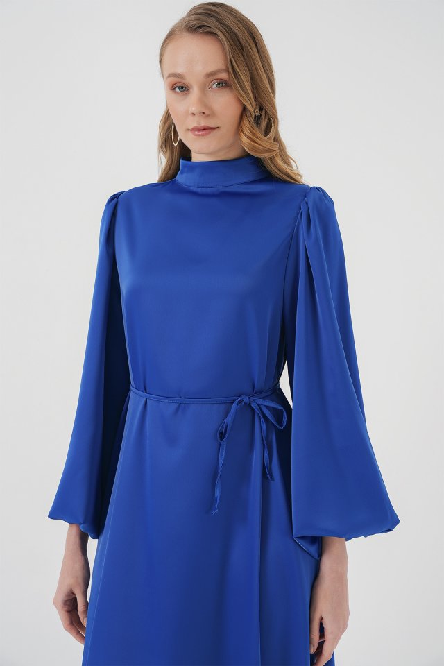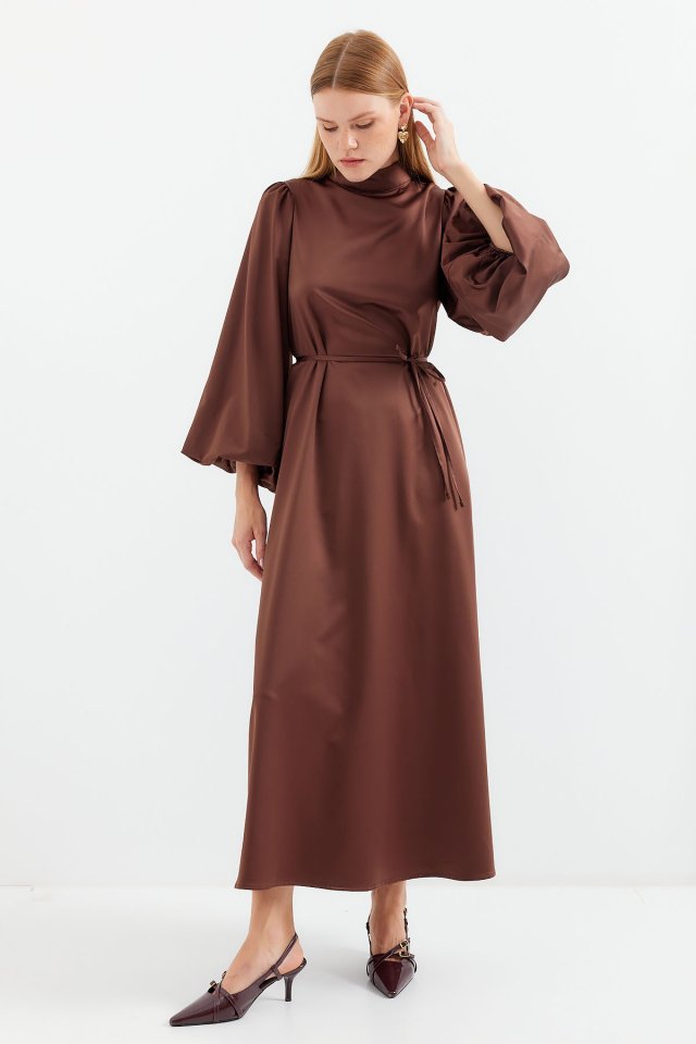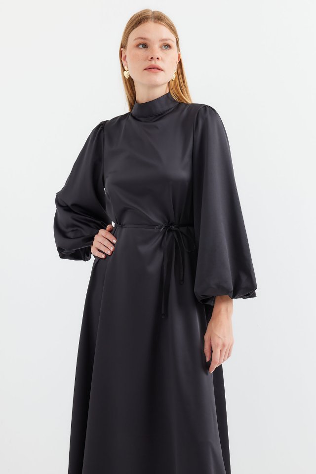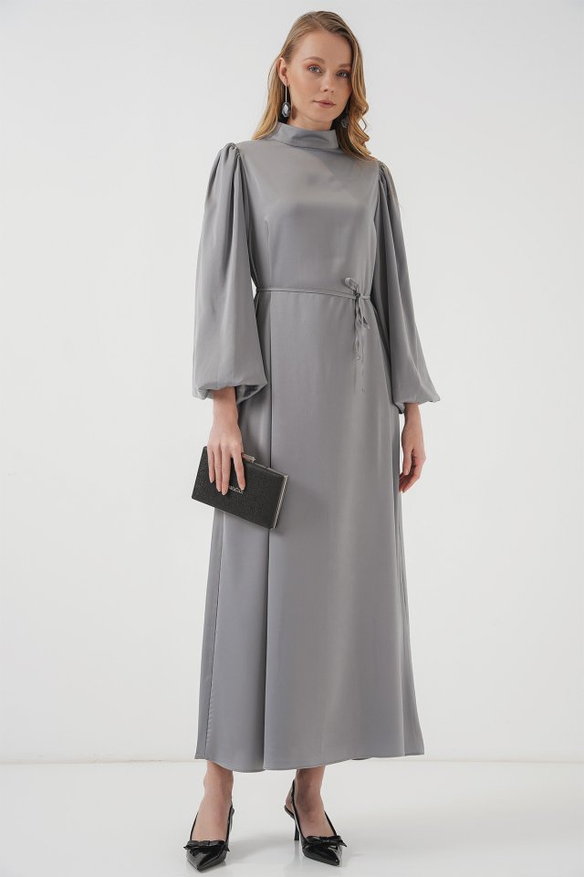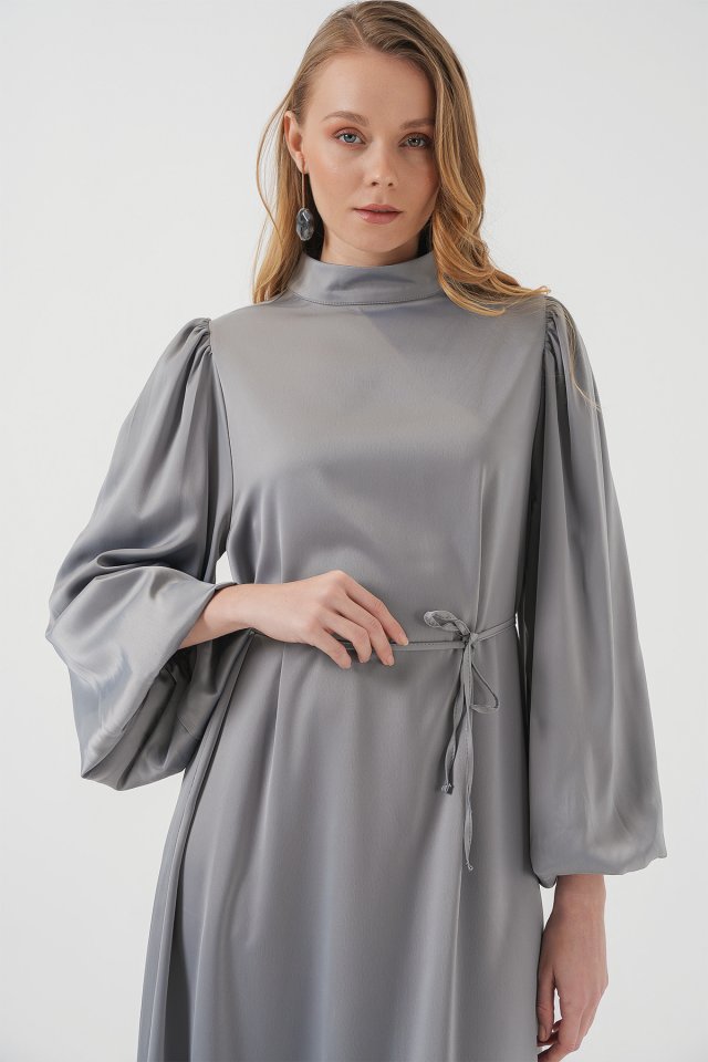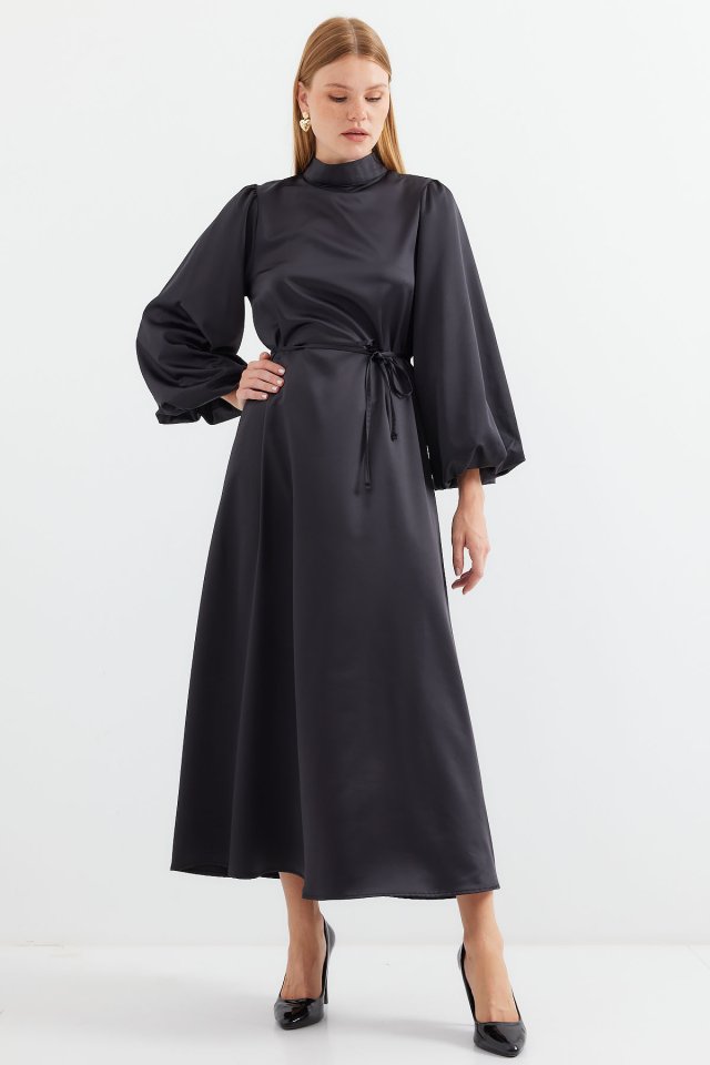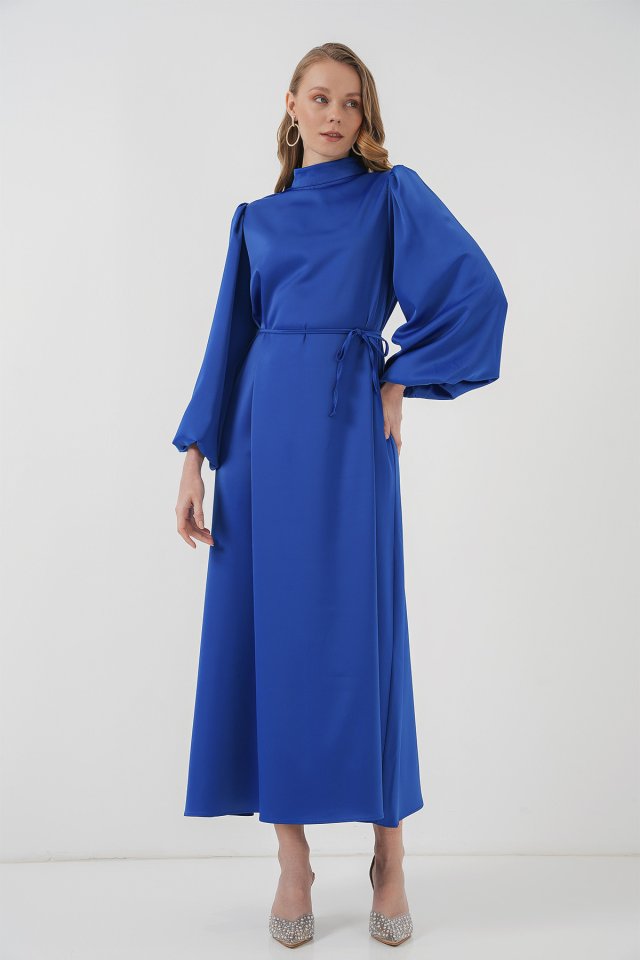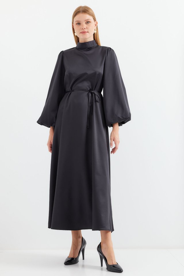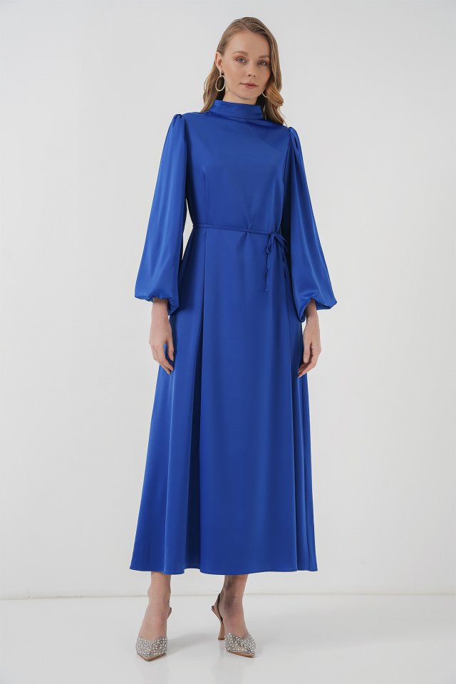 2510 Saten Tesettür Abiye Elbise - Zümrüt Yeşili
