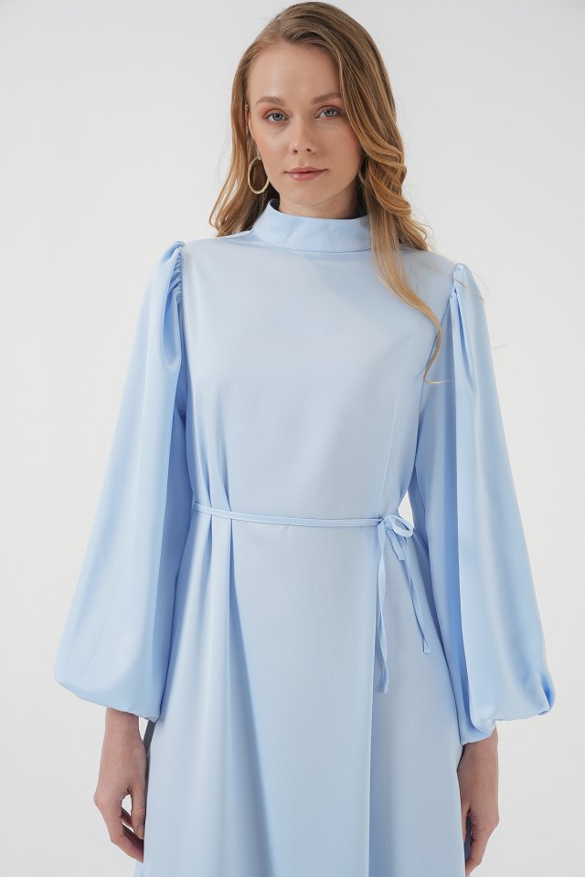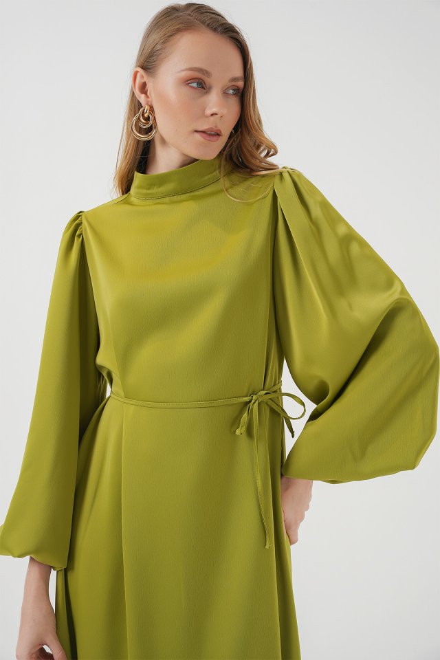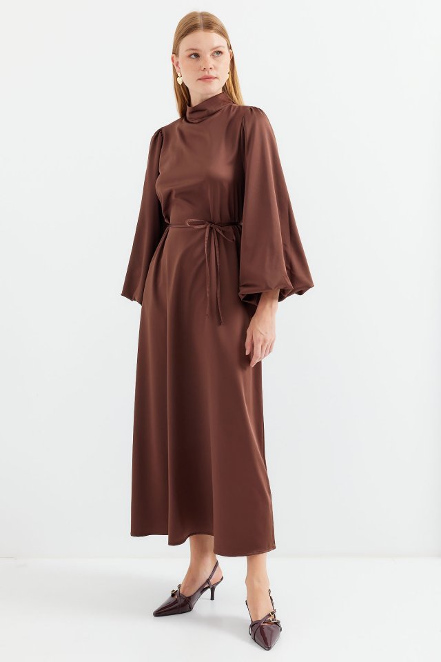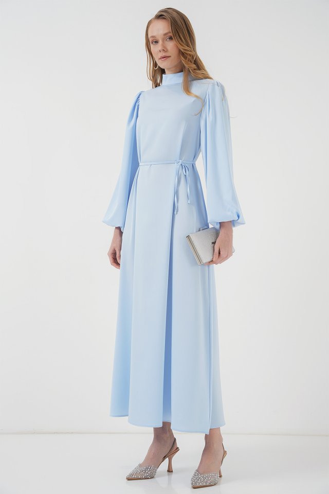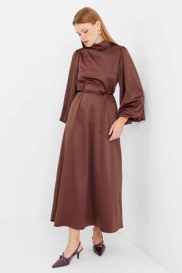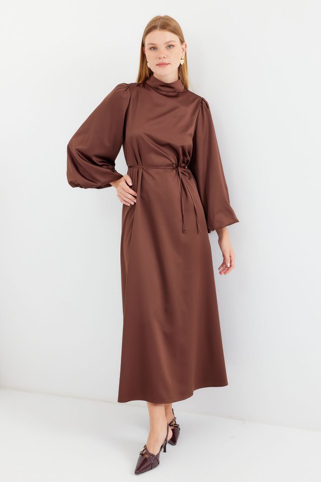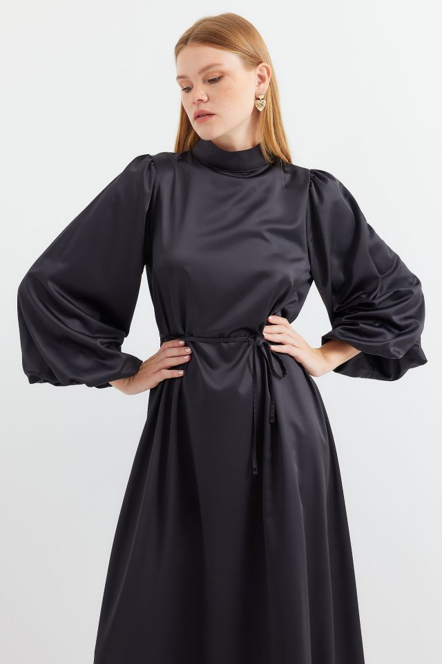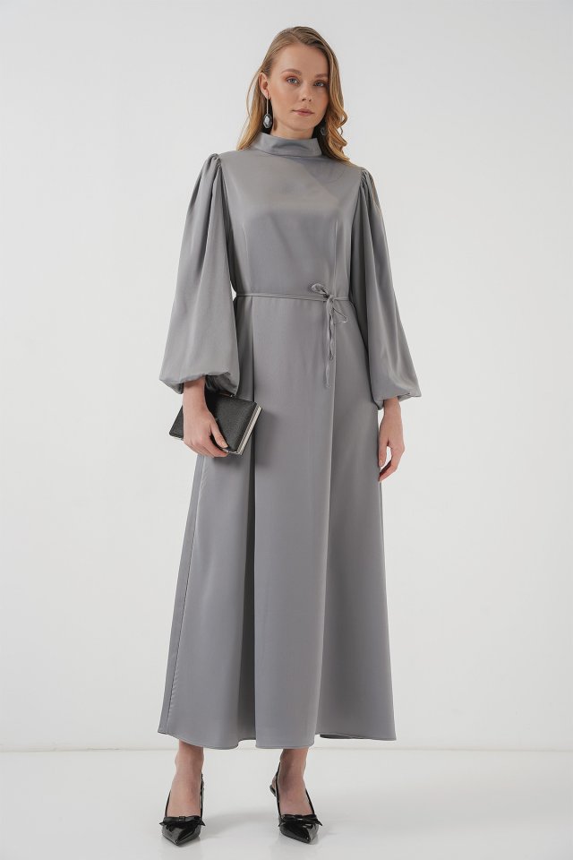 2510 Saten Tesettür Abiye Elbise - Zümrüt Yeşili