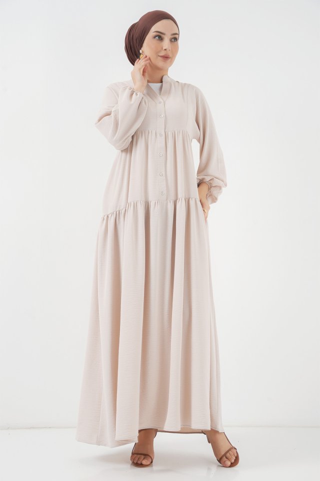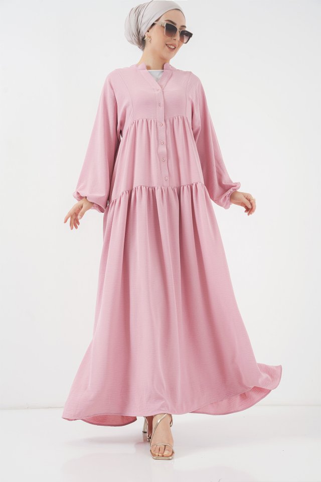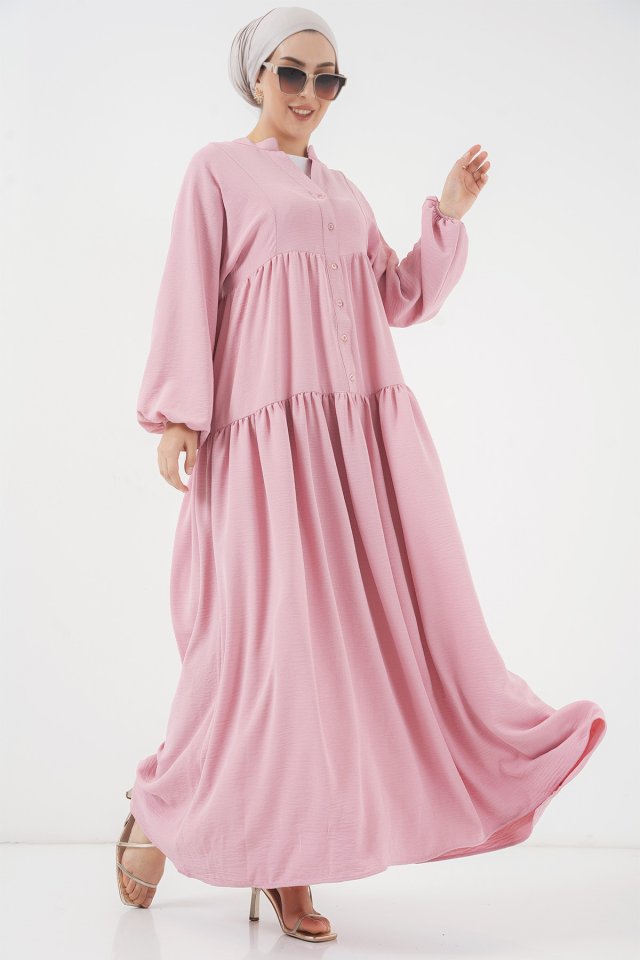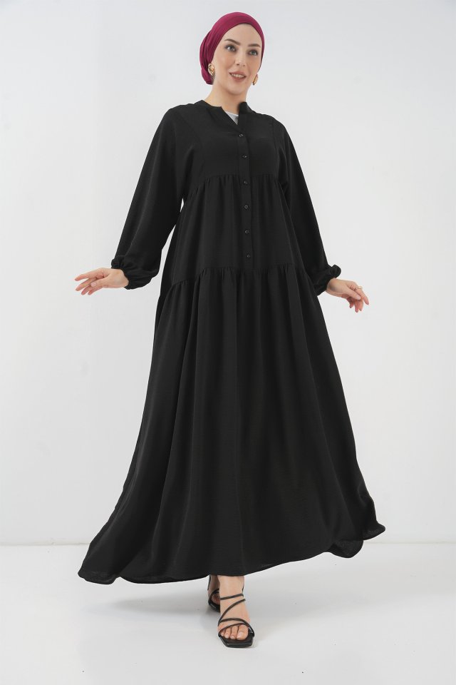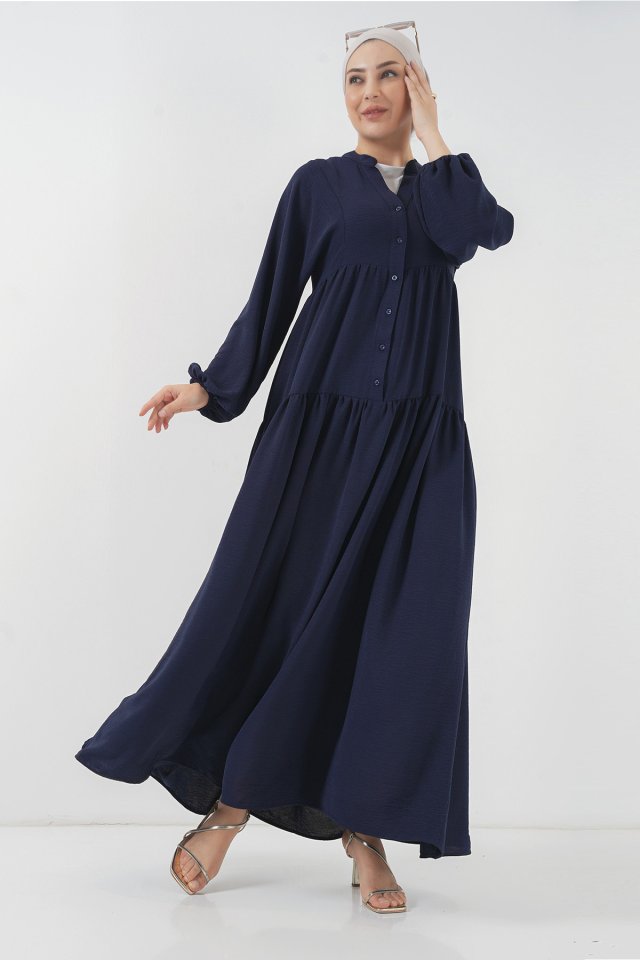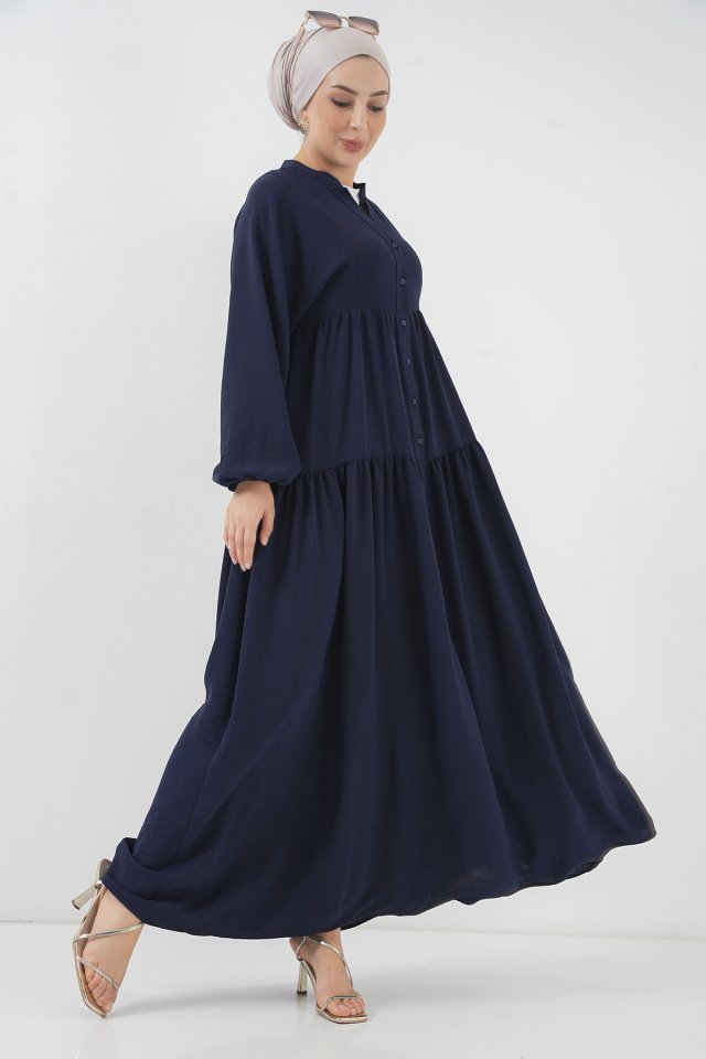 2527 Uzun Tesettür Elbise - Lacivert