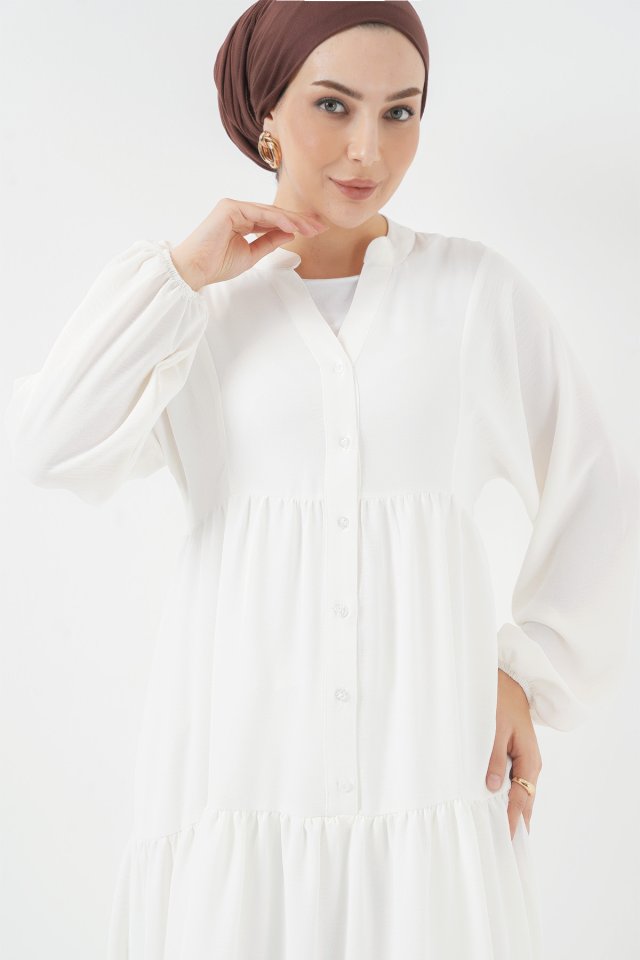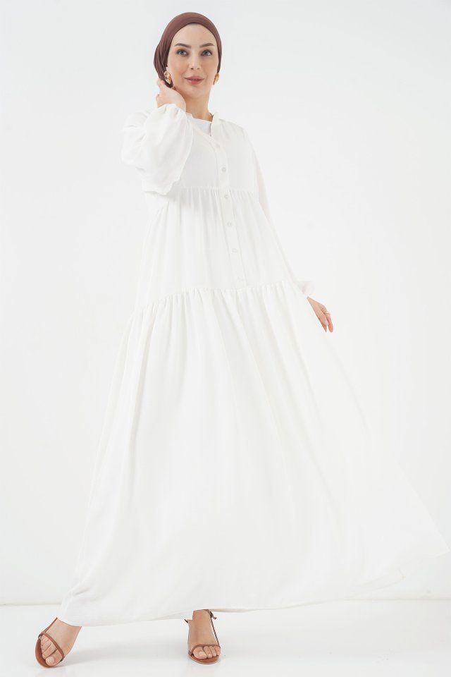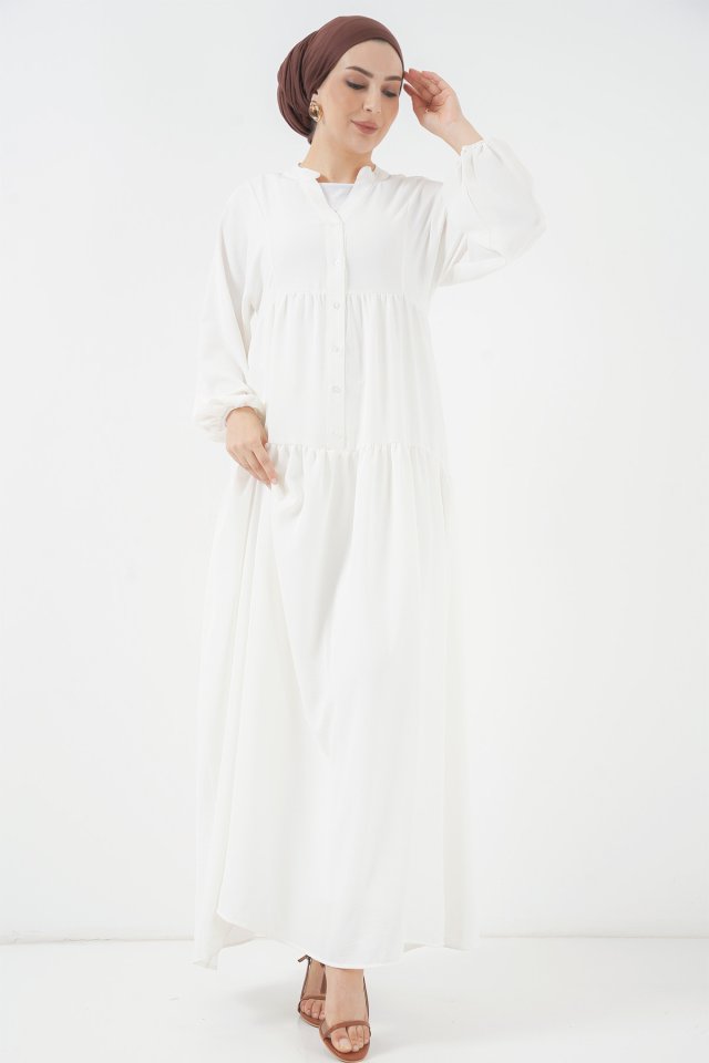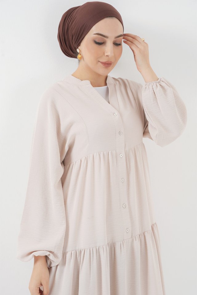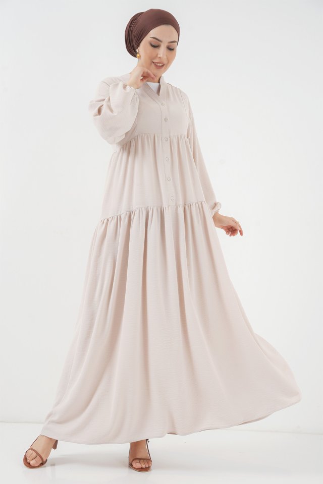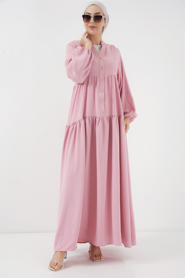 2527 Uzun Tesettür Elbise - Lacivert