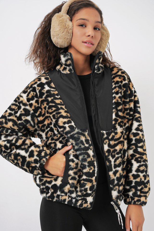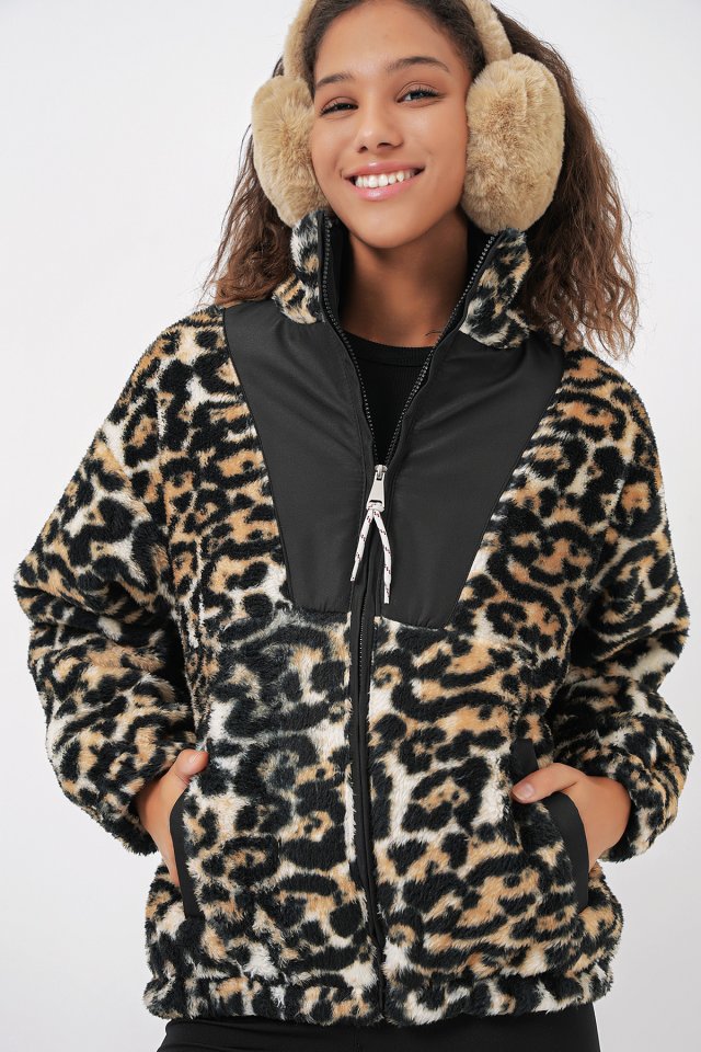 5194 Peluş Mont Ceket - Ekru