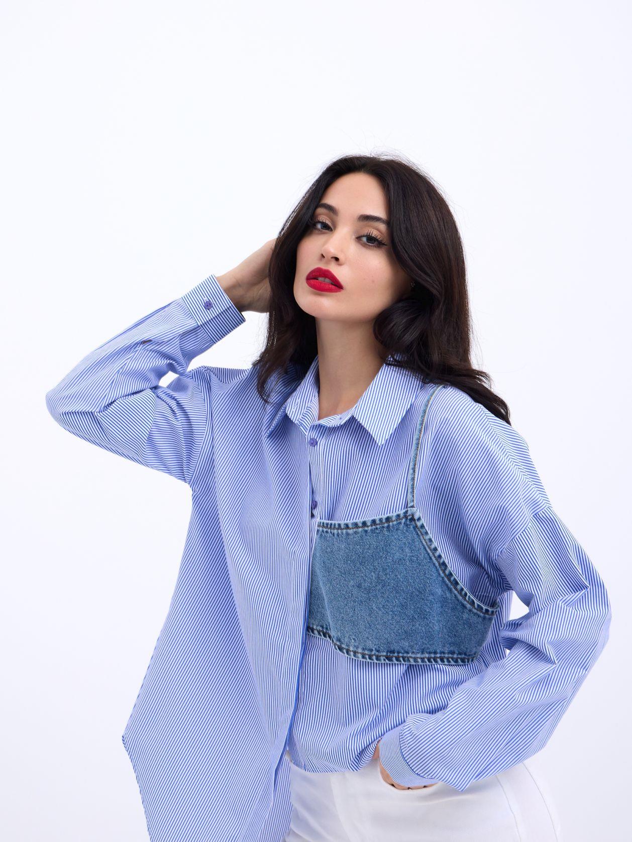 5419 GÖMLEK-MAVİ BEYAZ ÇİZGİLİ