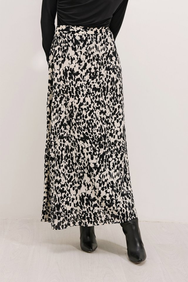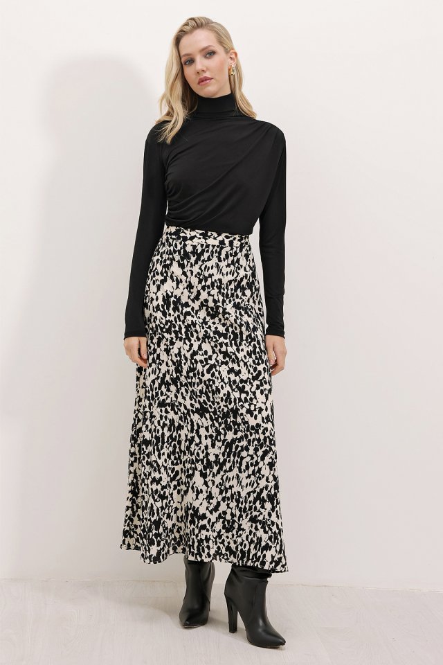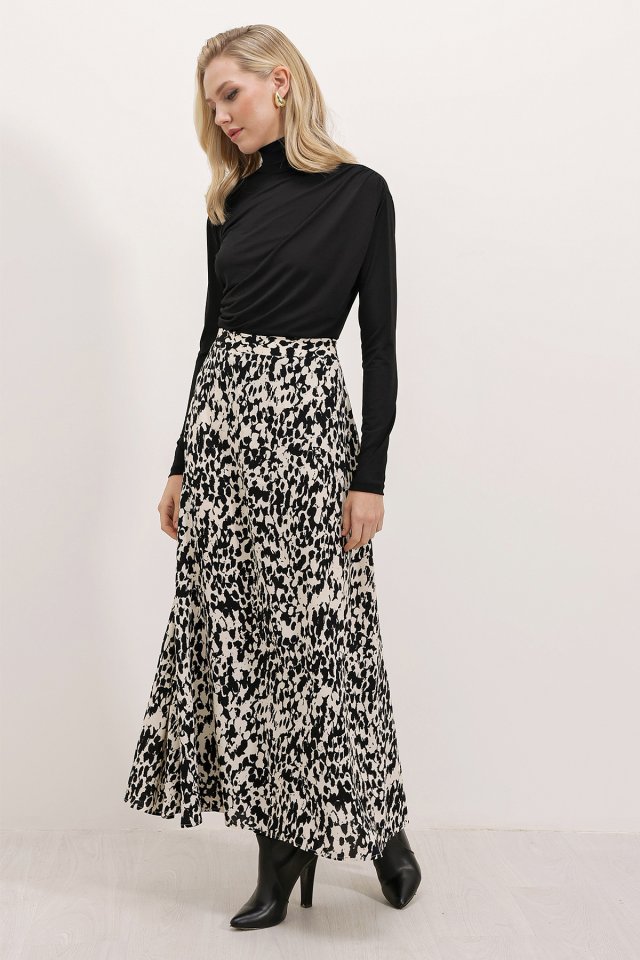8003 Desenli Viskon Etek - Siyah