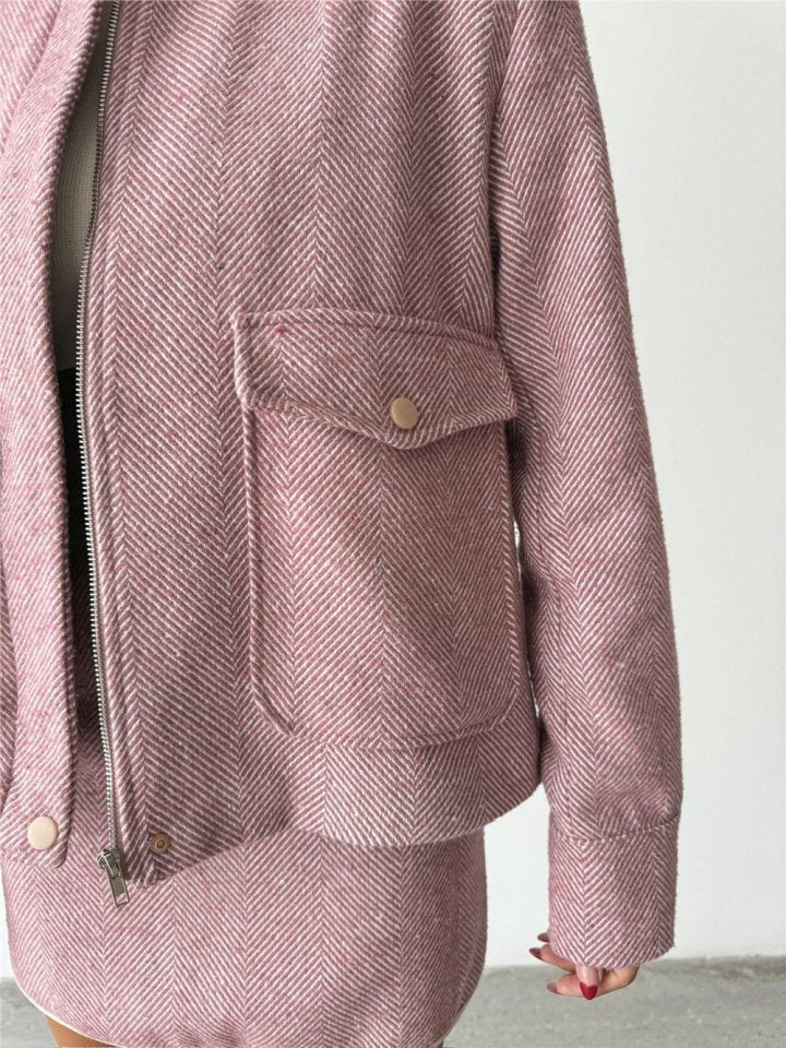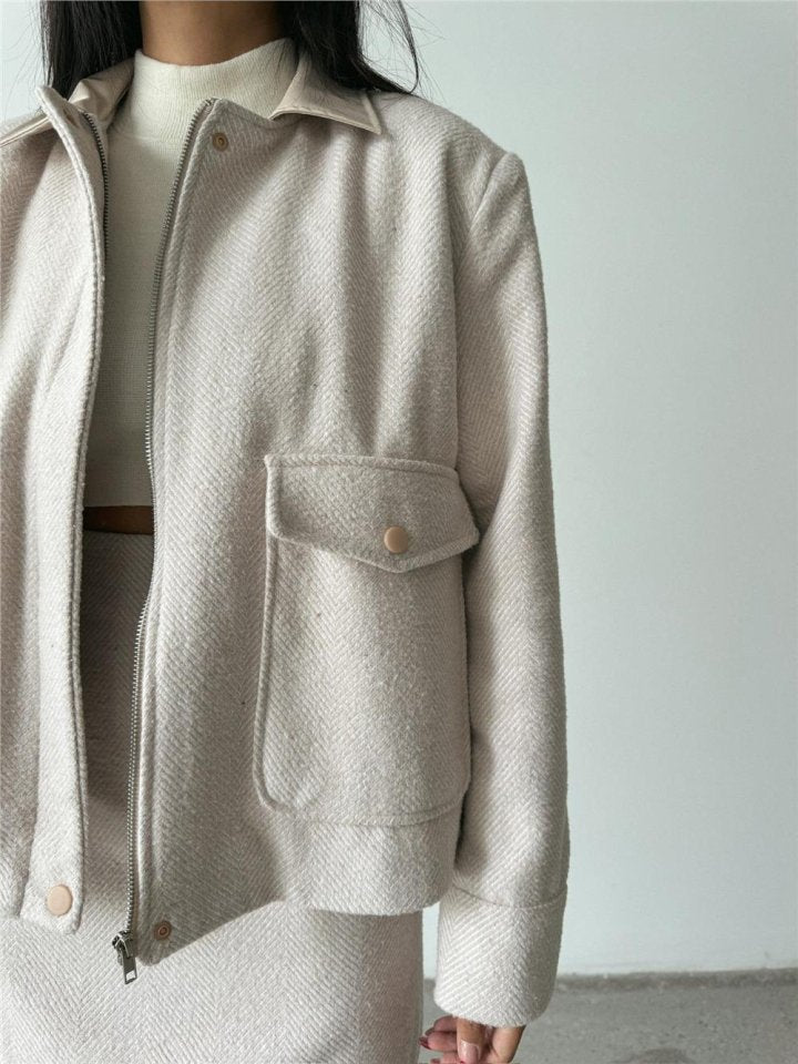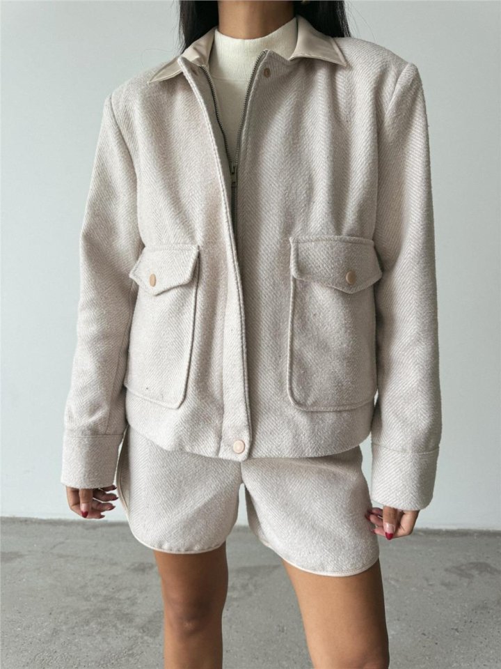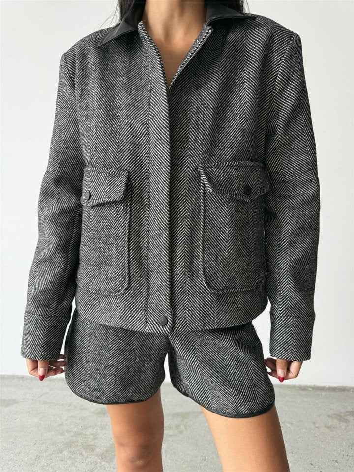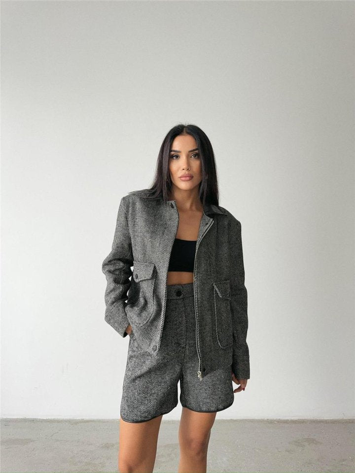 BALIKSIRTI KAŞE FERMUARLI CEKET KISA - Siyah