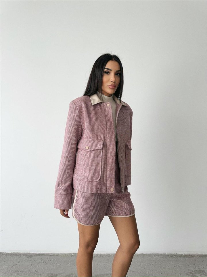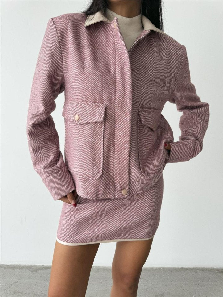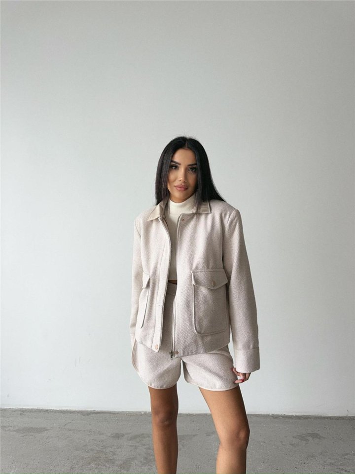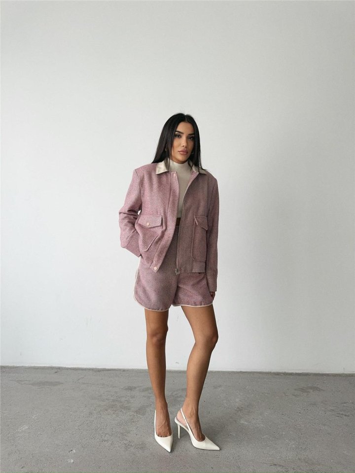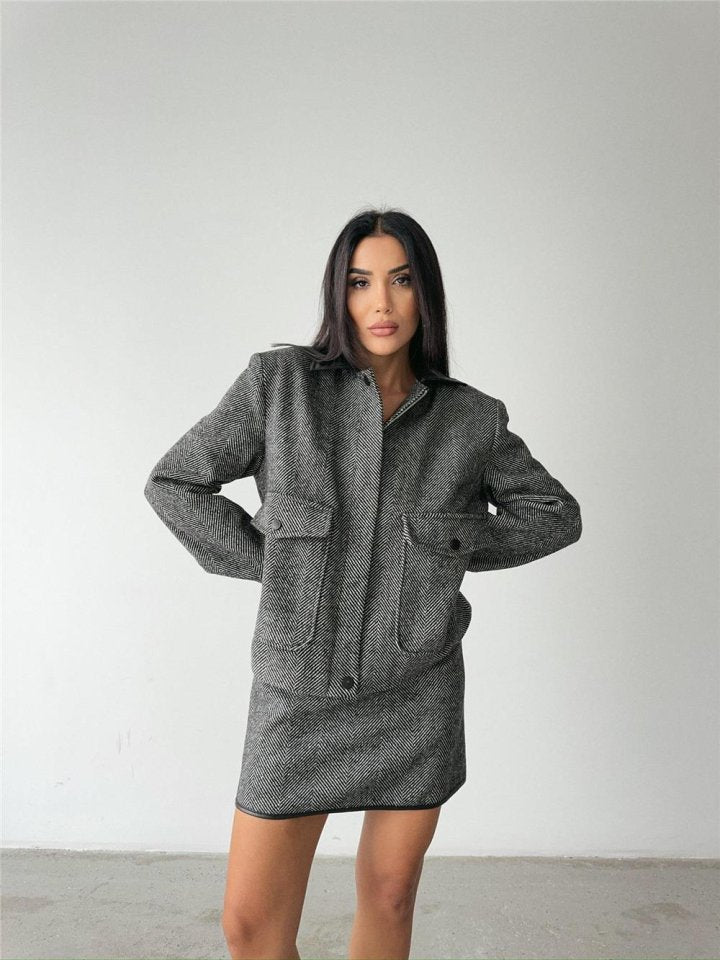 BALIKSIRTI KAŞE FERMUARLI CEKET KISA - Siyah