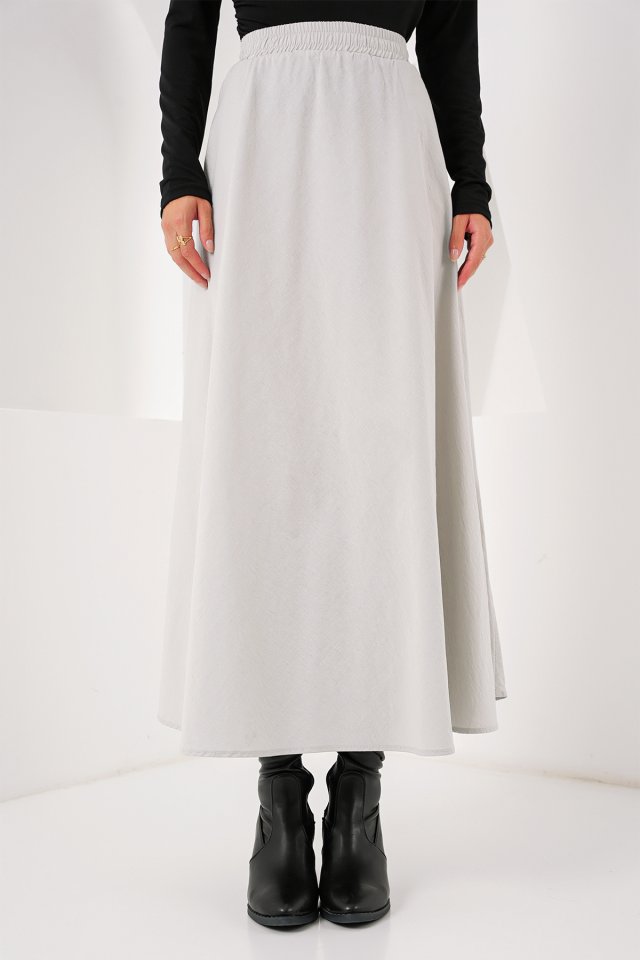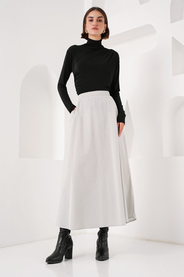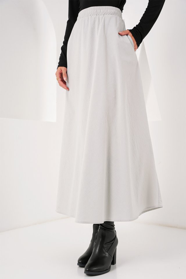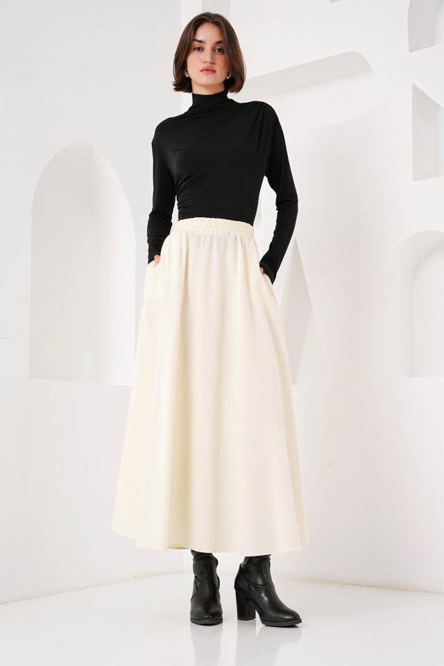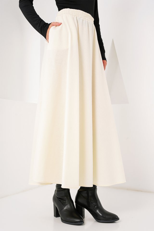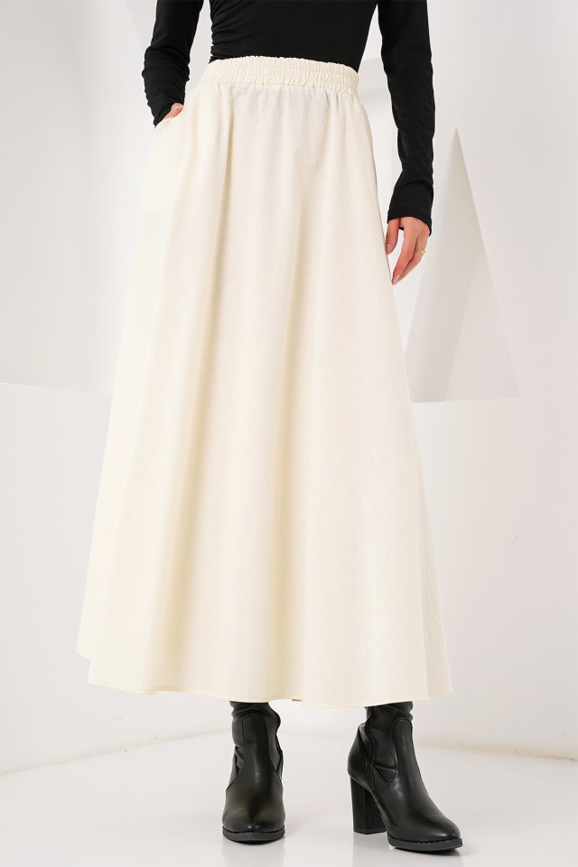 Cep Detaylı Uzun Etek 8024 - Krem