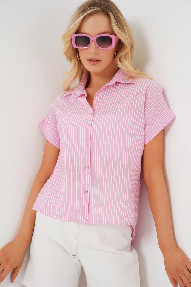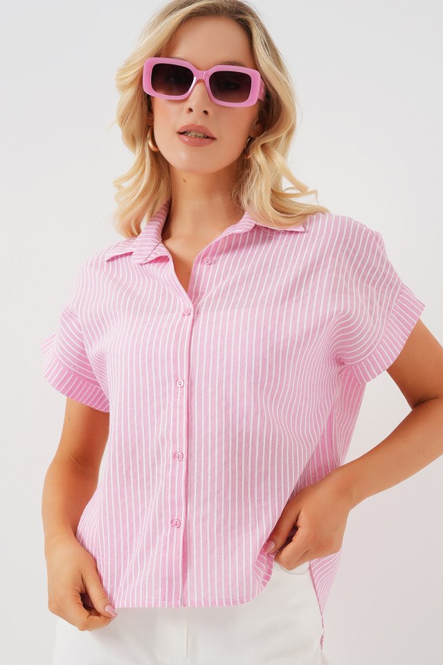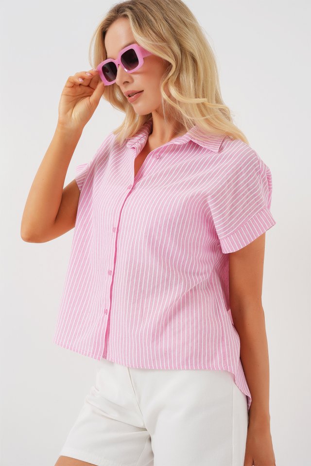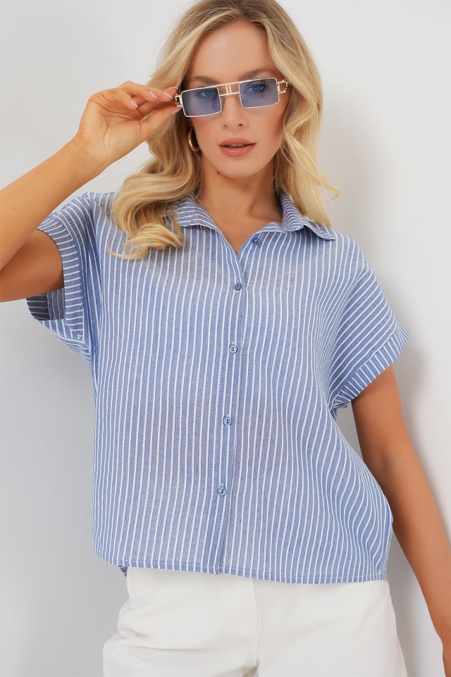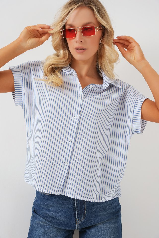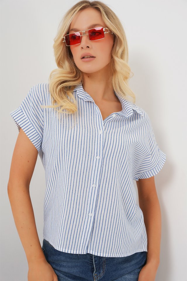 Çizgili Kısa Kol Gömlek 20324 - Açık Mavi
