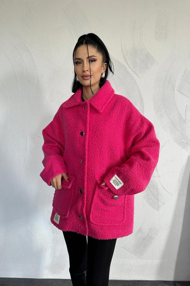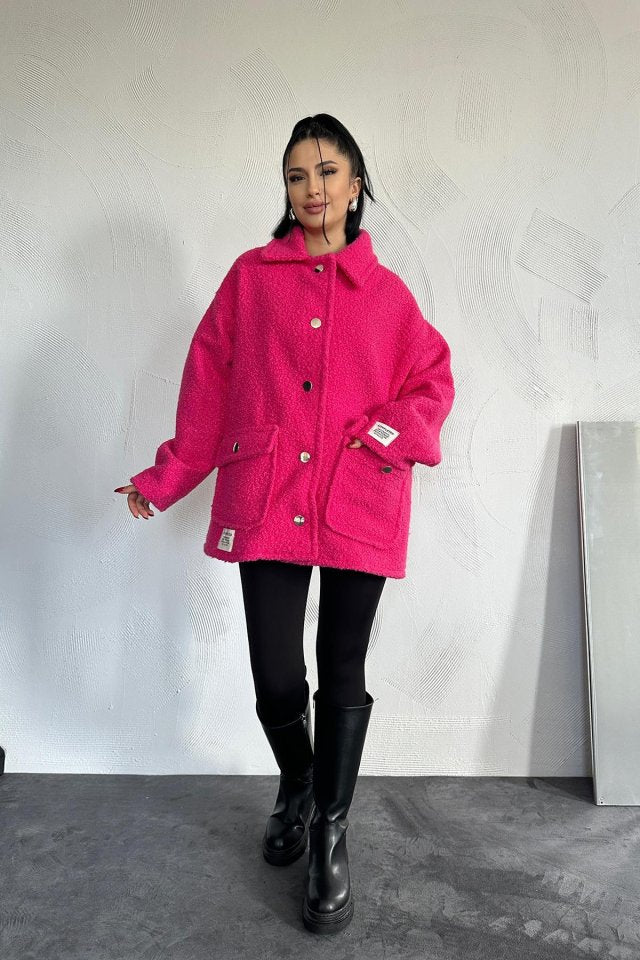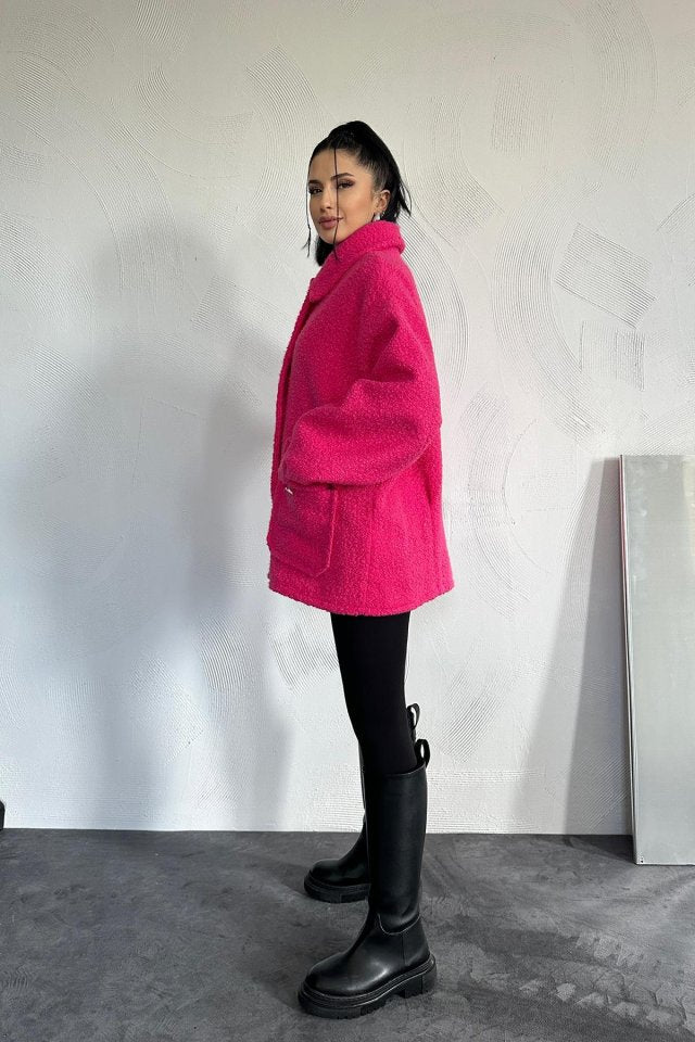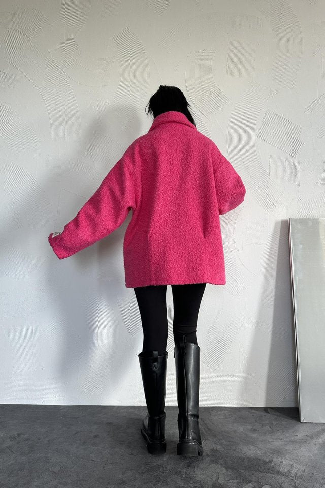 Fuşya Etiketli Pile Detaylı Ceket