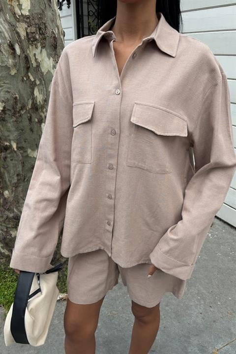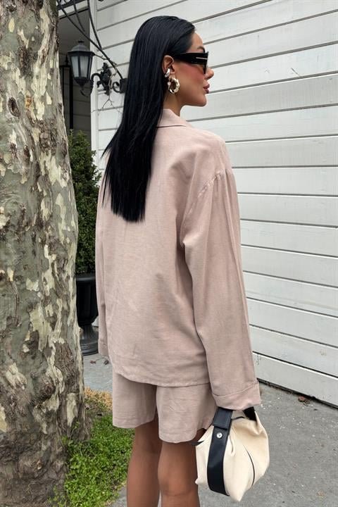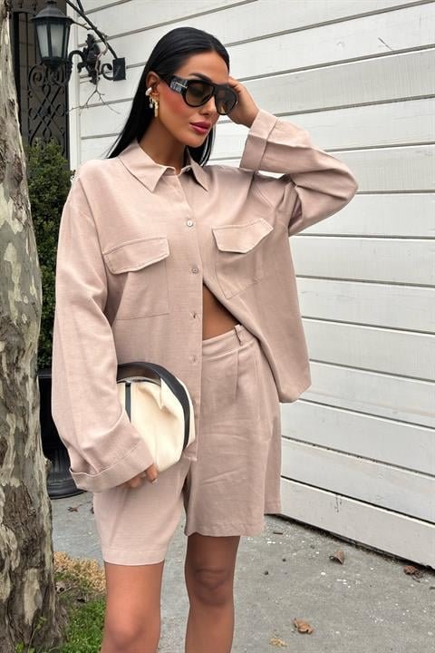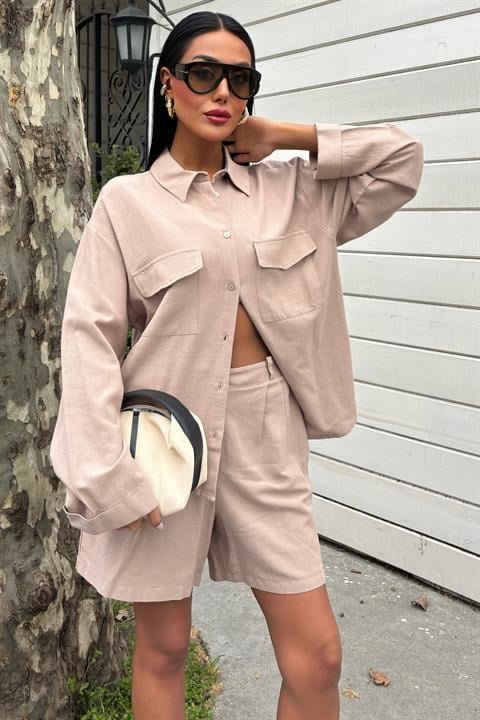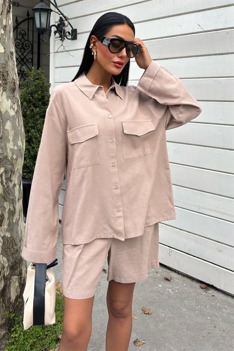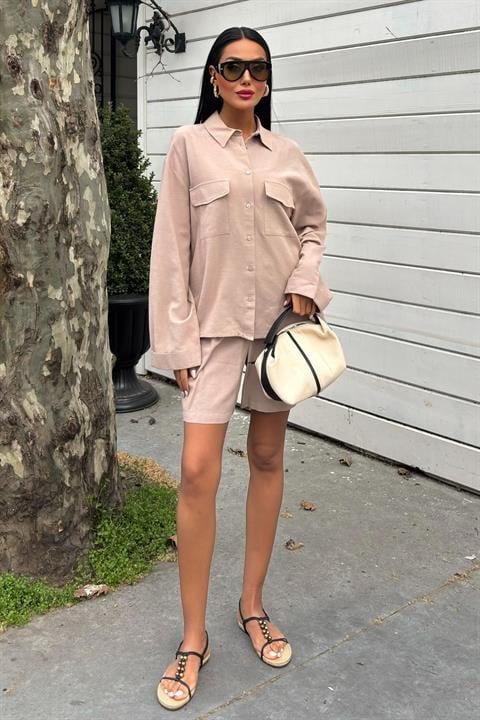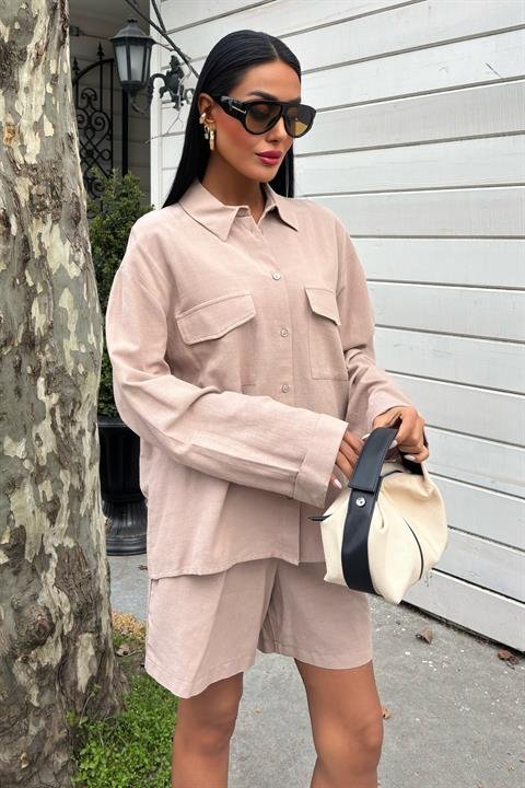 Gömlek Ve Şort Flamlı Keten Takım 10130