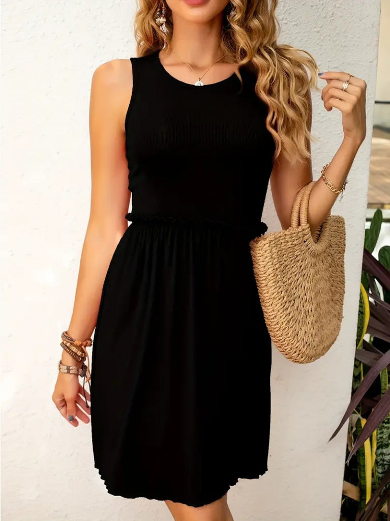 Kadın Bel Lastik Ve Büzgü Detay Viskon Mini Elbise