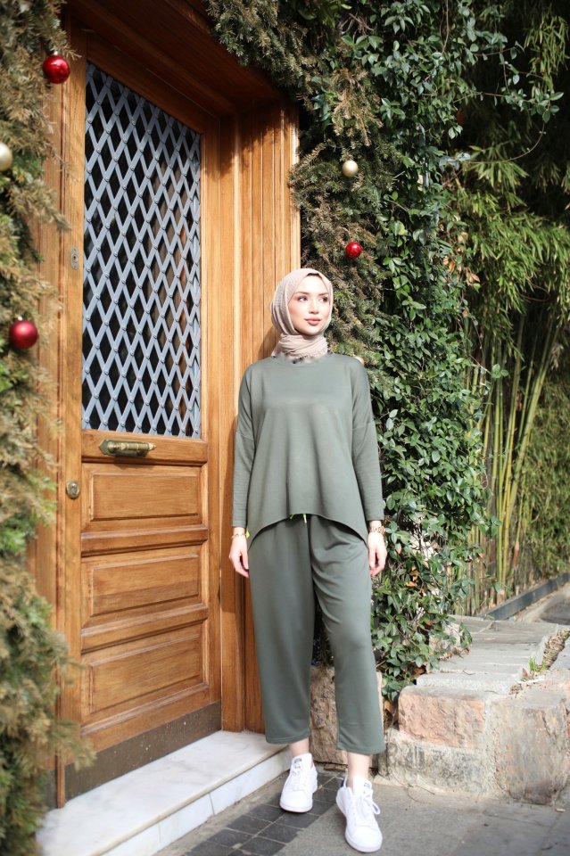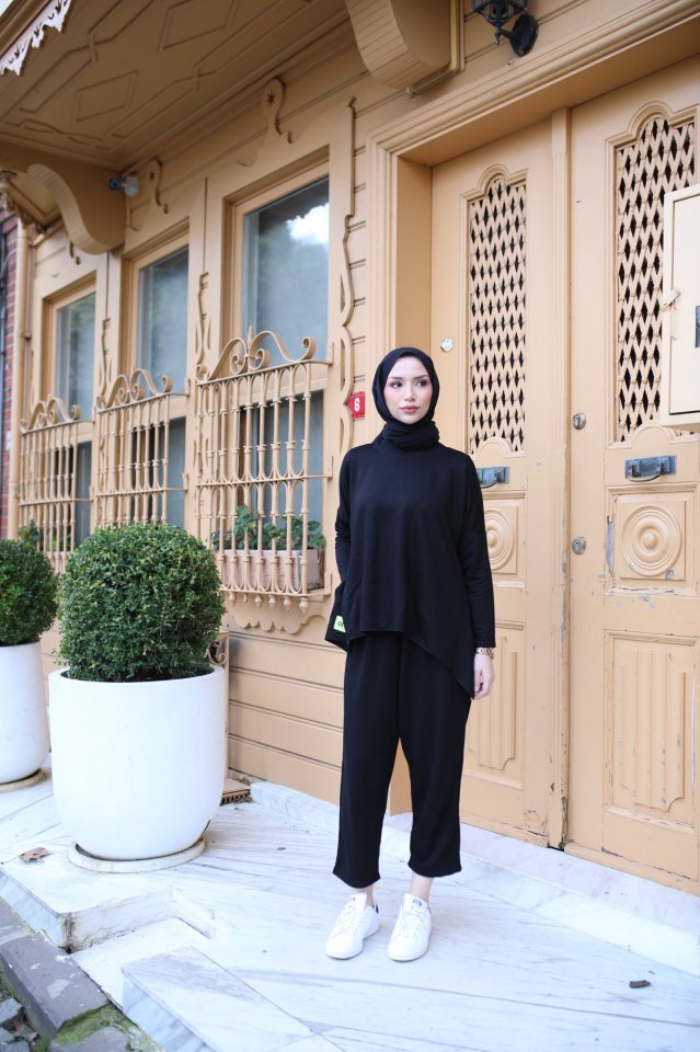 Kadın Iki Iplik Viskon Pamuk Kumaş Arma Detaylı Ikili Takım