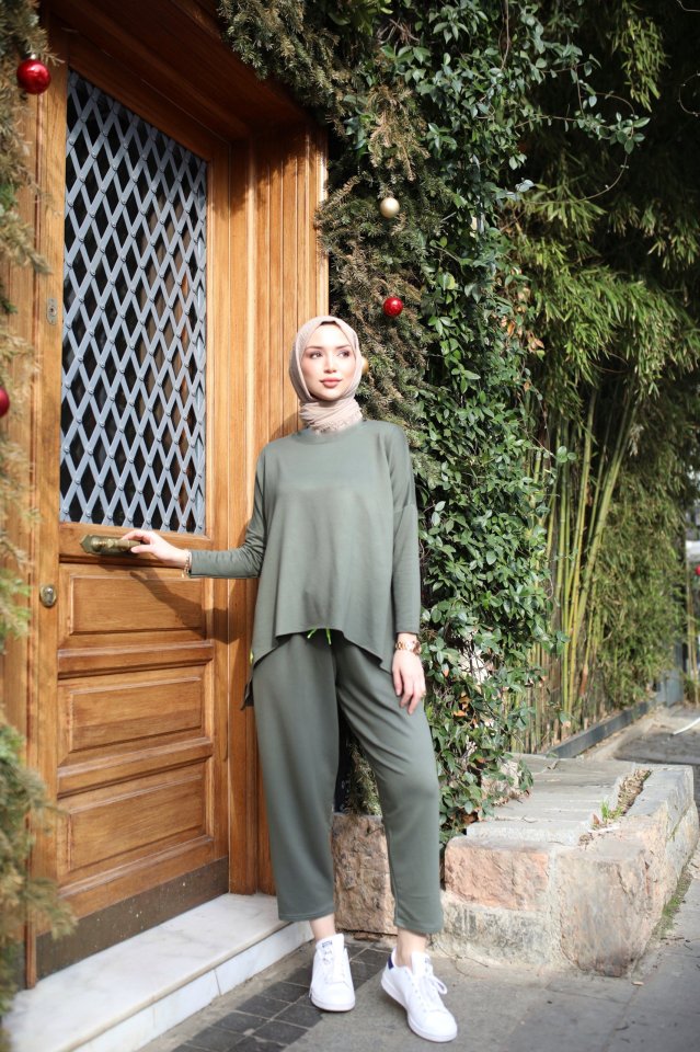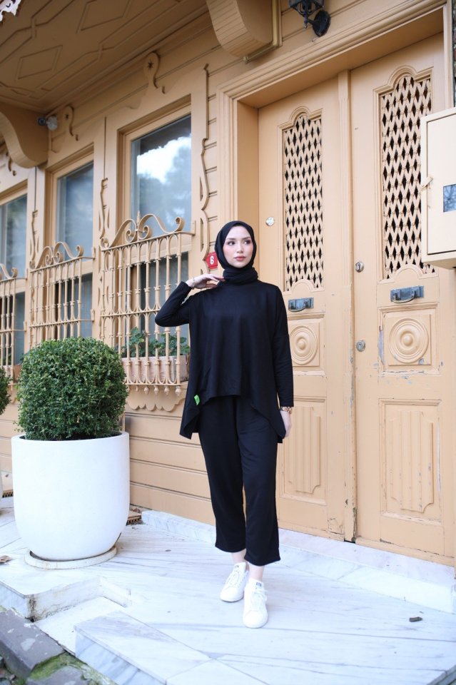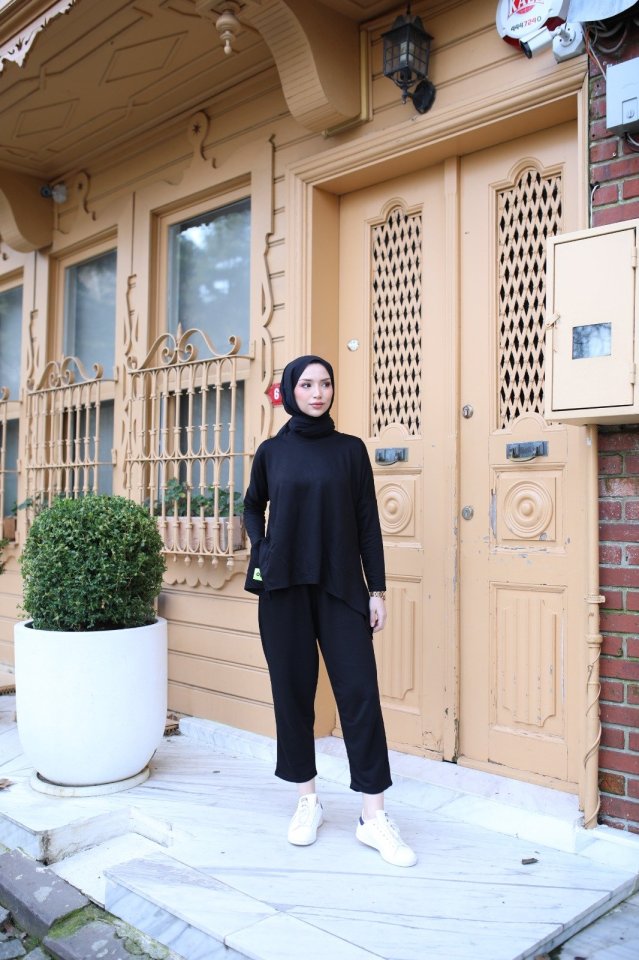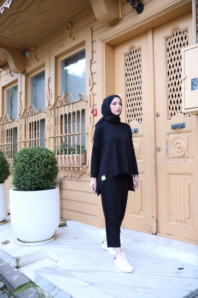 Kadın Iki Iplik Viskon Pamuk Kumaş Arma Detaylı Ikili Takım
