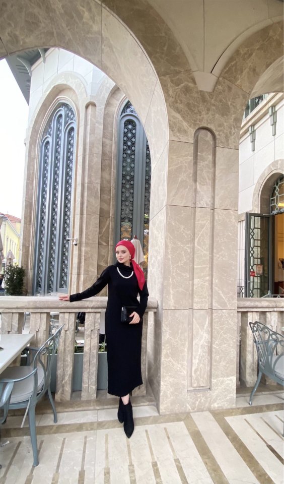 Kadın Uzun Kollu Boğazlı Midi Boy Triko Elbise (kemersiz)