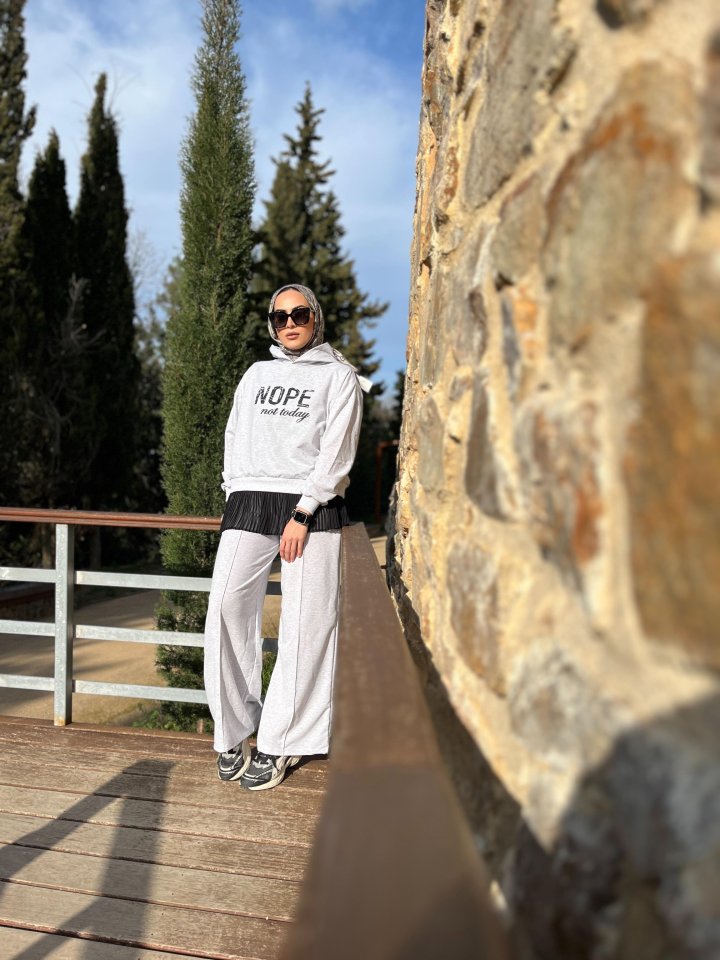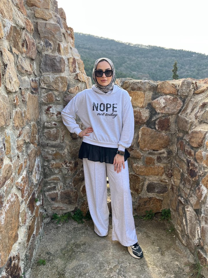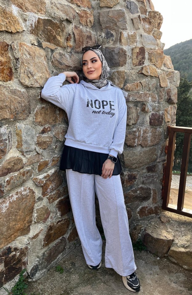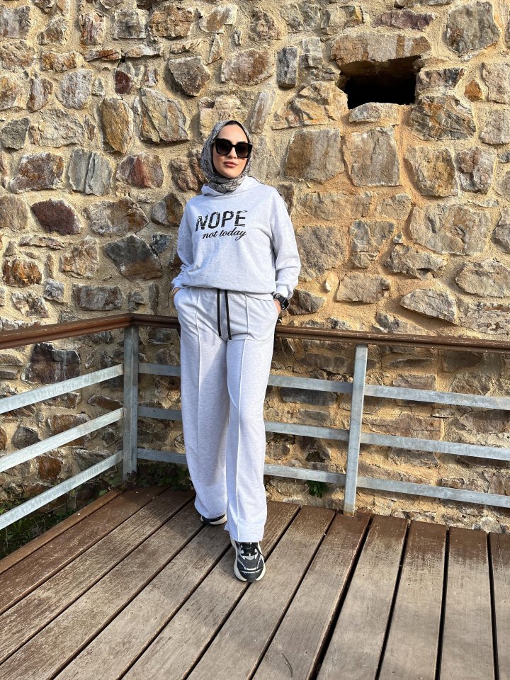 Kadın Uzun Kollu Nope Baskılı Beli Ribanalı Ikili Takım