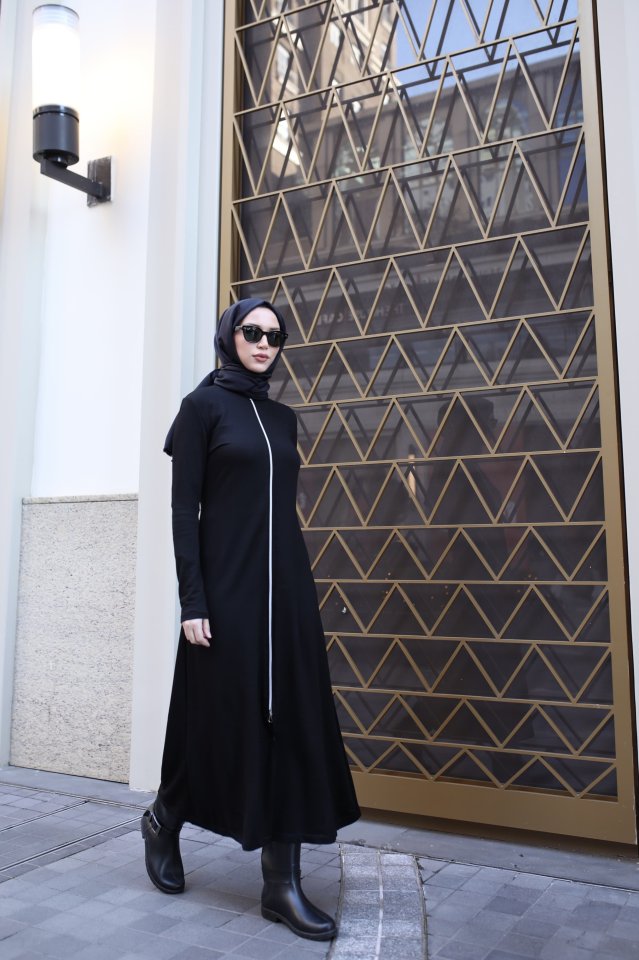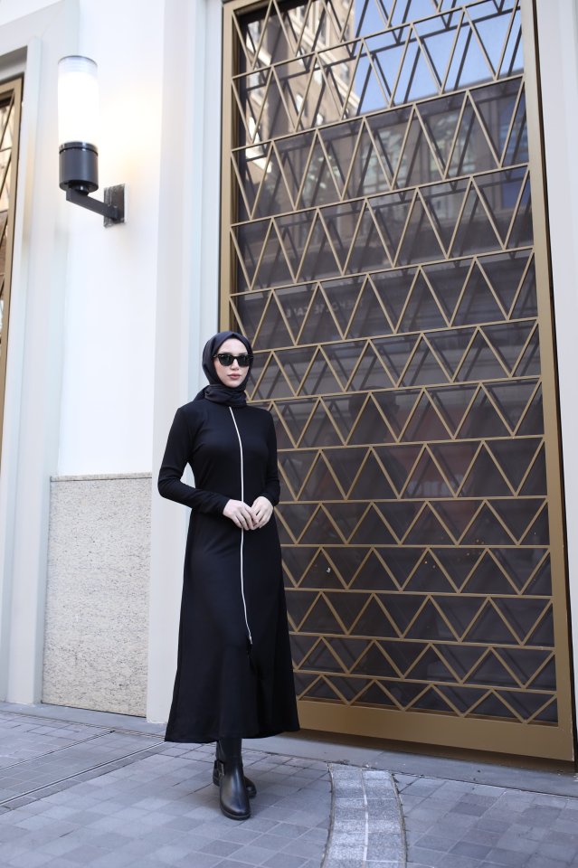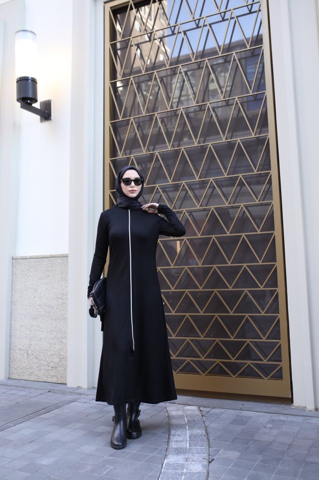 Kadın Uzun Kollu önden Fermuarlı Ithal Krep Elbise