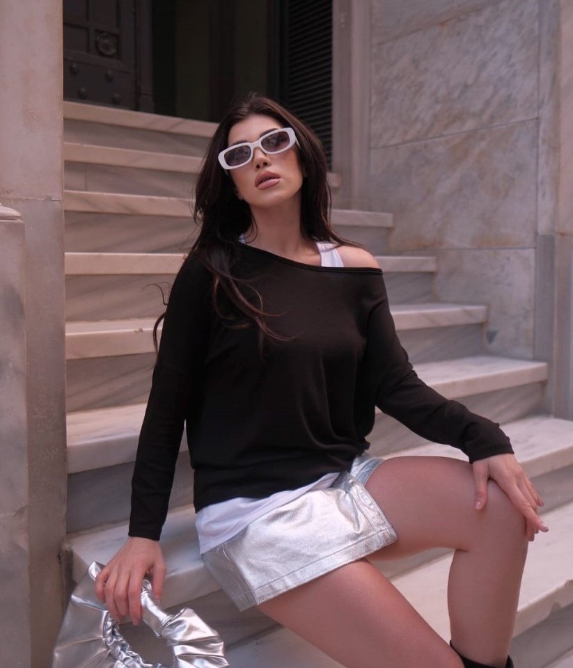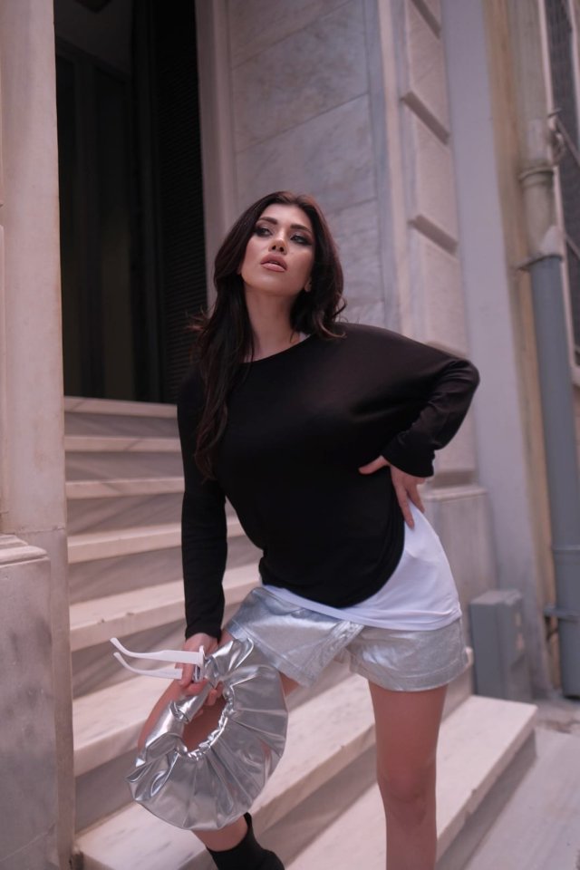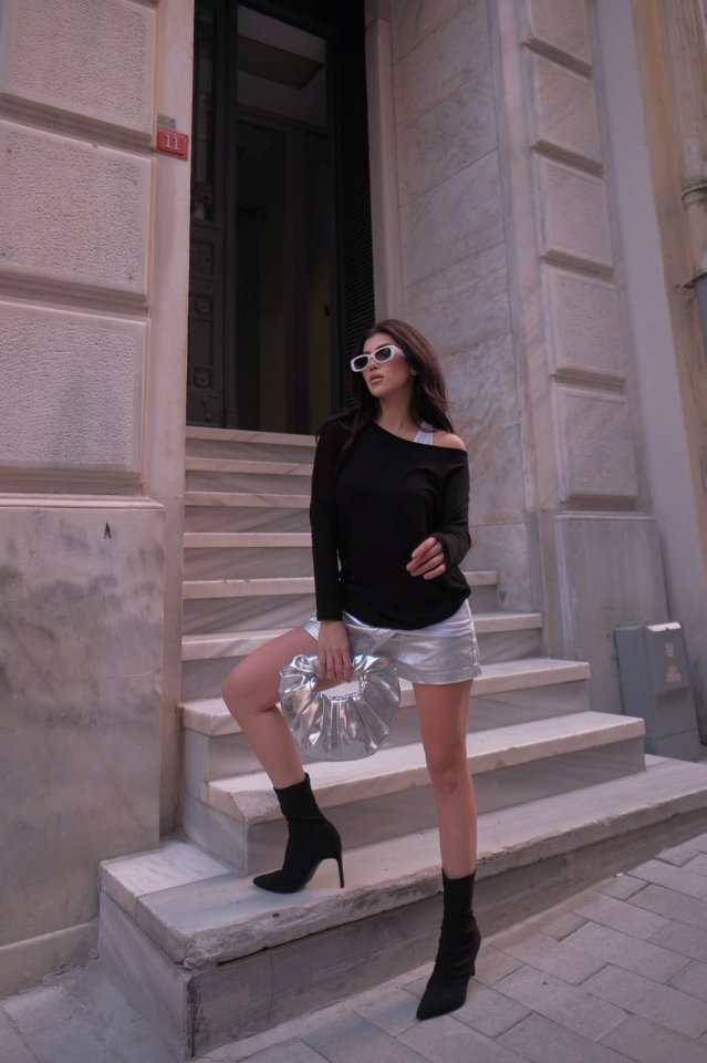 Kadın Uzun Kollu Tek Omuzu Açık Salaş çilek Iç Atlet Viskon Bluz