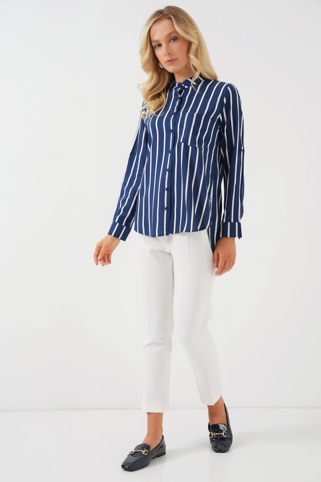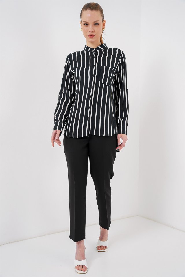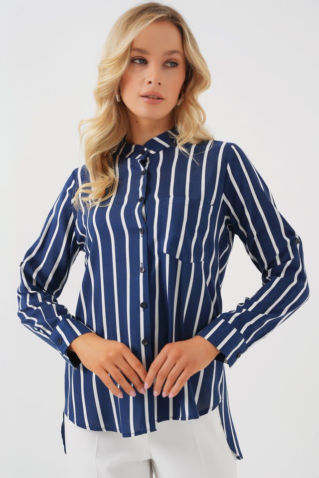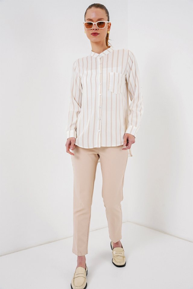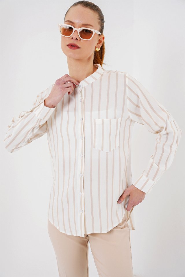Uzun Kollu Çizgili Gömlek 20283 - Bej